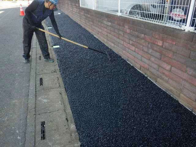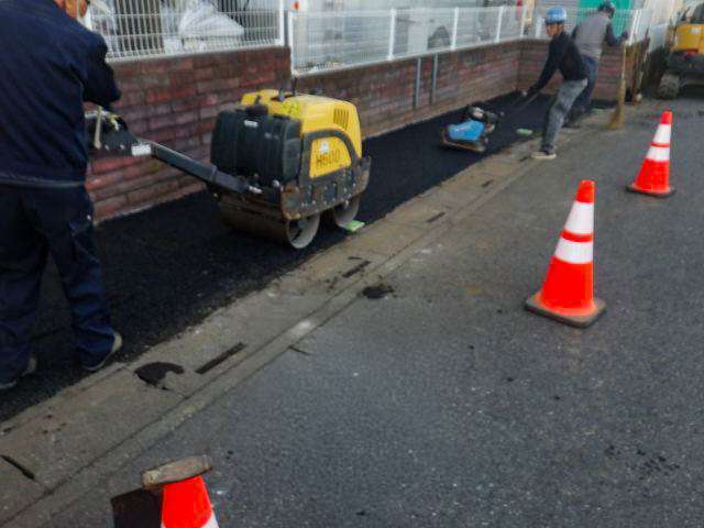 施工では、下地の状況を丁寧に確認したうえで、適切な厚さと配合のアスファルトを使用し、長期間にわたり耐久性を保てる仕上がりを目指しました。施工中は周辺環境や通行人への安全確保にも十分配慮し、スムーズかつ丁寧な作業を心がけました。